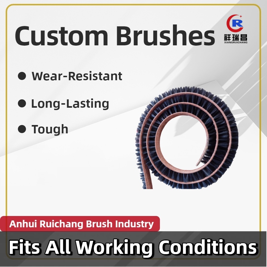 Naylon Filament Kemer Fırçası, yüksek mukavemetli naylon filamanlardan ve yüksek kaliteli taban kemerinden yapılmış endüstriyel özel şekilli bir fırçadır. Temel avantajı, naylon filamentlerin aşınma direnci, korozyon direnci ve istikrarlı performansında yatmaktadır. Taban kayışı kanvas, kauçuk veya metalden yapılabilir. Naylon filamentler, malzemelerin yüzeyindeki toz, döküntü ve yağ lekelerini verimli bir şekilde temizleyebilen, eşit yoğunluğa sahip ve düşmesi kolay olmayan entegre kıl ekim teknolojisi ile sıkıca sabitlenir. Diğer malzemelerle karşılaştırıldığında, naylon filamentler mükemmel tokluğa sahiptir ve deforme edilmesi kolay değildir, iş parçalarının yüzeyine zarar vermeden çeşitli çalışma koşullarına uygundur. Aynı zamanda iyi asit ve alkali direncine ve yaşlanma karşıtı özelliklere sahiptirler ve karmaşık endüstriyel ortamlarda uzun süre kullanılabilirler. Ürün, modüler özelleştirmeyi destekler; bant genişliği (normal aralık 400mm-2200mm), uzunluk ve naylon filament uzunluğu (standart özellikler 25mm-120mm) ve çap (0,1-1mm) talep üzerine ayarlanabilir; madencilik, gıda işleme, elektronik ve diğer endüstrilerdeki konveyör hattı temizleme ve toz giderme işlemleri için uygundur. Kurulumu ve bakımı kolaydır, üretim hattıyla senkronize olarak çalışabilir, bant sürtünmesi veya elektrik gücüyle çalıştırılabilir, enerji tasarrufu sağlar ve verimlidir ve endüstriyel temizlik alanında pratik bir destek aracıdır.